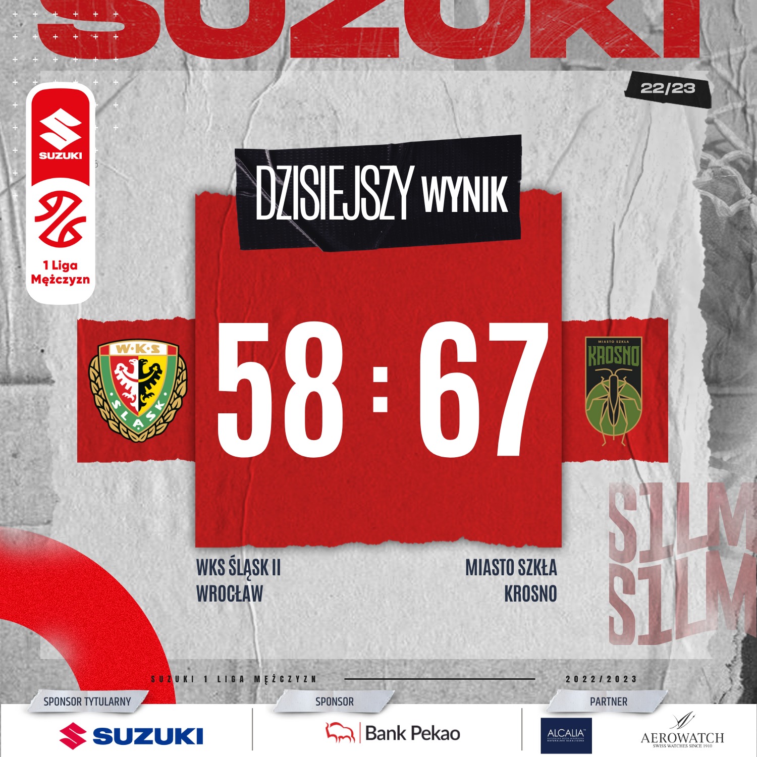 W zaległym spotkaniu 27. kolejki Suzuki 1 Ligi Mężczyzn Miasto Szkła Krosno pokonało na wyjeździe WKS Śląsk II Wrocław. 17 punktów dla gości uzyskał wchodzący z ławki Klavs Dubults.