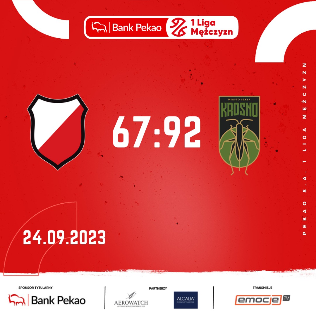 Dobrą dyspozycję z przedsezonowych meczów kontrolnych koszykarze Miasta Szkła potwierdzili także w pierwszym ligowym spotkaniu. Goście od wyniku 10:12 kolejny fragment spotkania wygrali 12:2 i po 10 minutach gry uzyskali ośmiopunktową przewagę. Miejscowi nie mogli poradzić sobie zwłaszcza w walce pod tablicami, gdzie dobrą zmianę dał autor 6 punktów, w tym efektownego wsadu Szymon Sobiech.