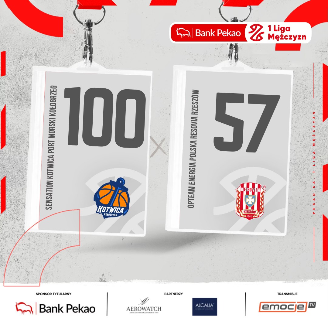Zdecydowane zwycięstwo Sensation Kotwicy Port Morski Kołobrzeg na otwarcie 30. kolejki Pekao S.A. 1 Ligi Mężczyzn. Czarodzieje z Wydm nie zanotowali co prawda większej serii punktowej niż 10:0, ale grając konsekwentnie od pierwszej do ostatniej minuty zwyciężyli aż 100:57 broniący się przed spadkiem OPTeam Energia Polska Resovię Rzeszów.