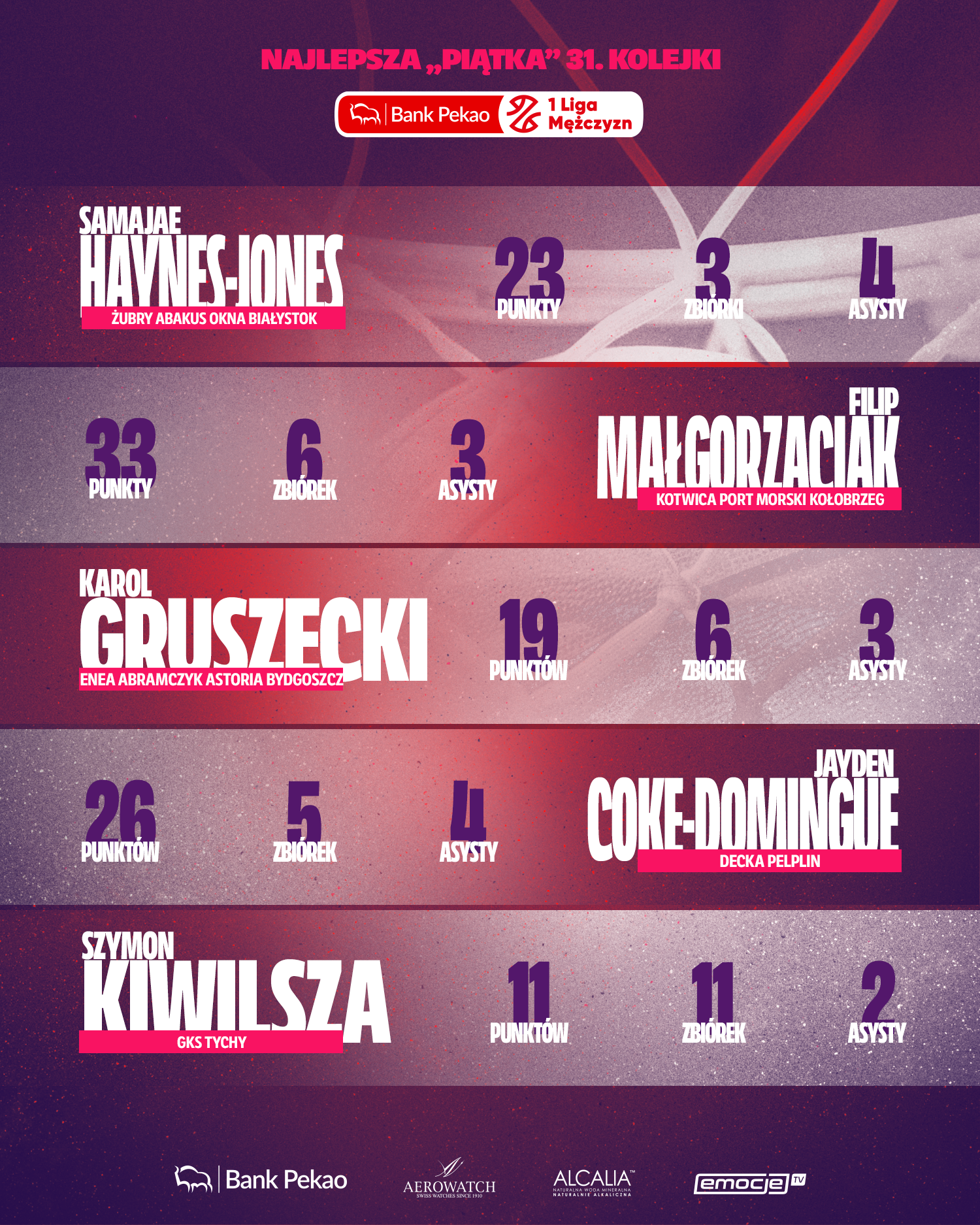 - w zestawieniu znajdą się zawodnicy z drużyn, które w danej kolejce wygrały swoje mecze. Wyjątkiem będzie tu tylko osiągnięcie przez zawodnika wyjątkowych statystyk indywidualnych, pomimo porażki jego drużyny – np. rekord punktowy sezonu, triple-double itd.