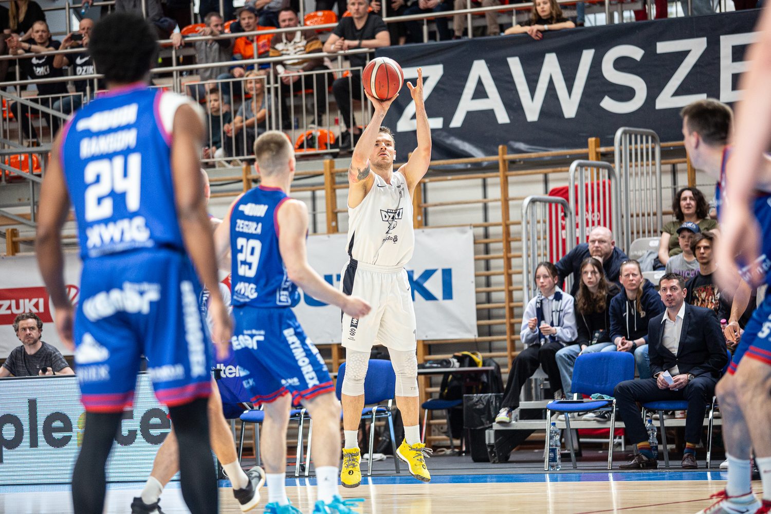 | Maksymilian Motel (5.3) | wykonywany rzut za 3 | Filip Zegzuła (7.5) |