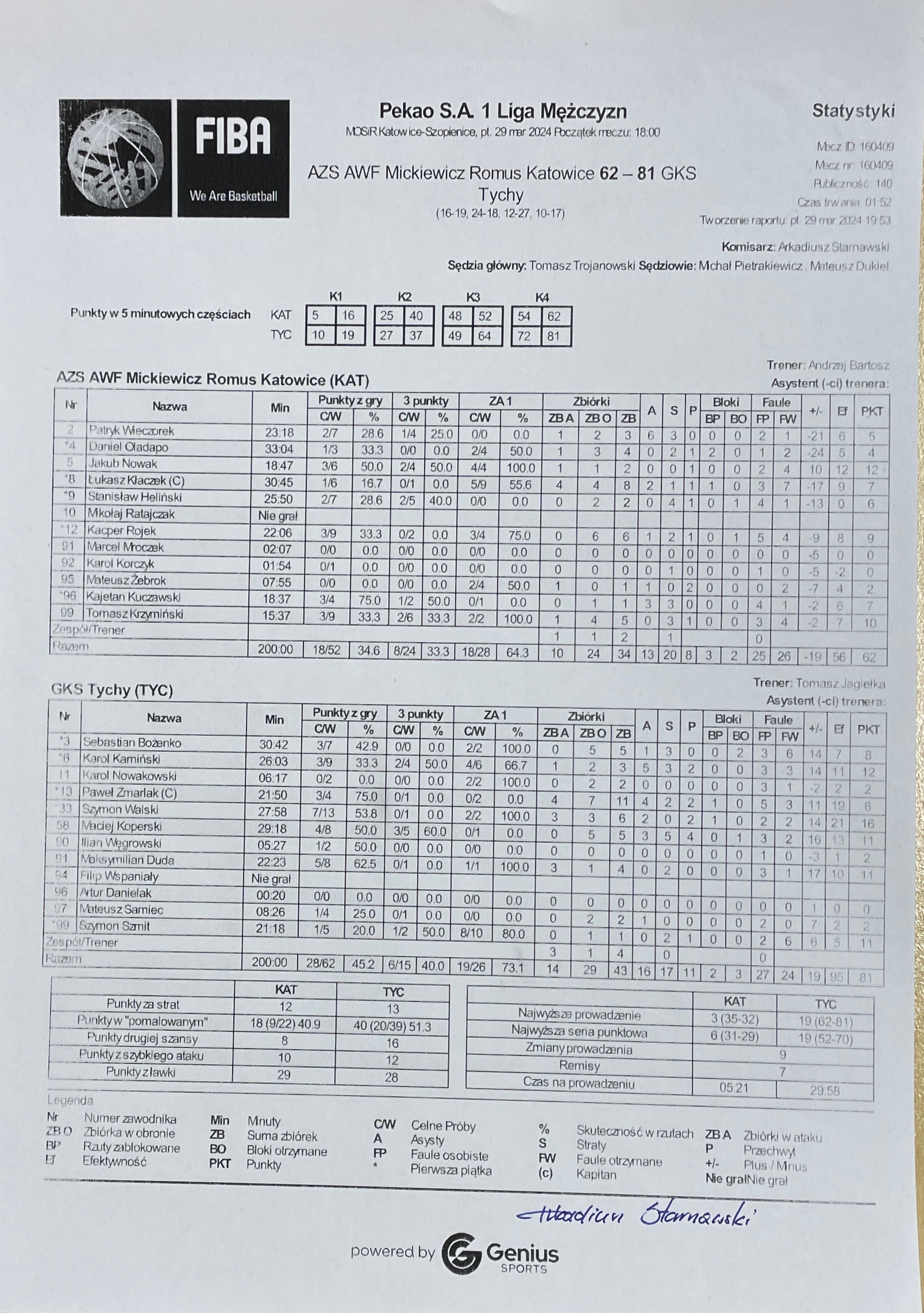 Sędziowie: Tomasz Trojanowski, Michał Pietrakiewicz, Mateusz Dukiel | Komisarz: Arkadiusz Starnawski