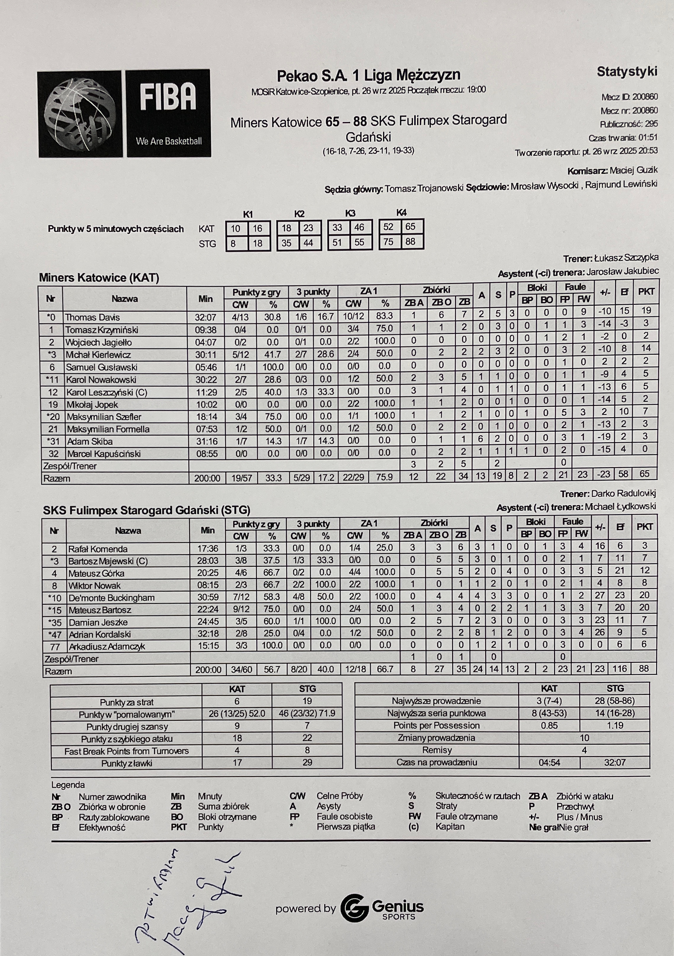 | Miners Katowice | Kwarta 1 | SKS Fulimpex Starogard Gdański | ||